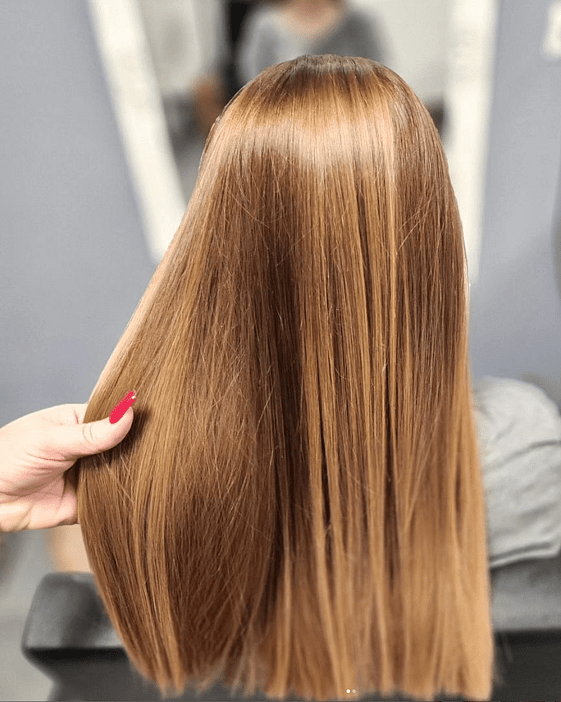 Application: A specially formulated gloss is applied to your hair, either clear for added shine or tinted to refresh your current color.